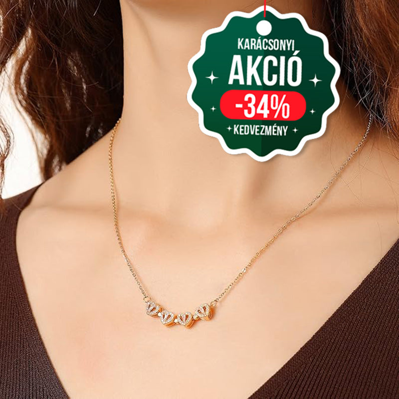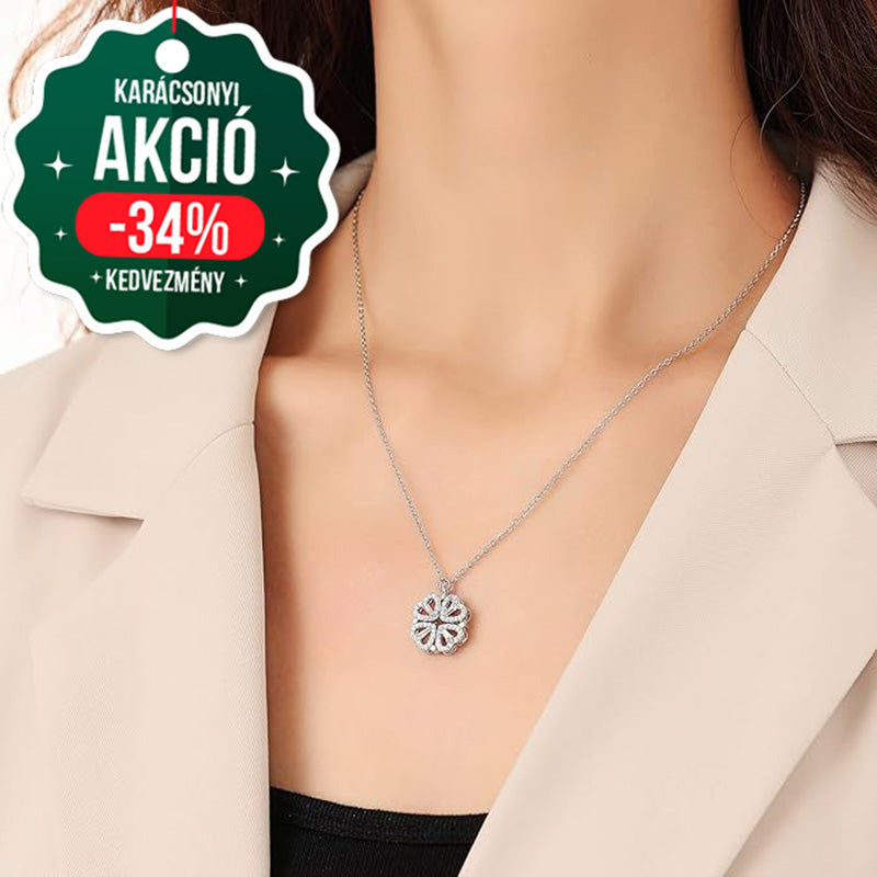 Akár egy hétköznapi viseletet szeretnénk feldobni, akár alkalmi, elegáns szetthez keresünk kiegészítőt, ez a nyaklánc kiválóan illik minden alkalomhoz. A mágnessel ellátott szívek összekapcsolódva aranyos négylevelű szirommá formálódnak, ami tökéletes megjelenés a mindennapokban. A mágneses kapcsolatot megbontva pedig csillogó, elegáns nyakláncot kapunk, amit 4 különálló szív alkot.
