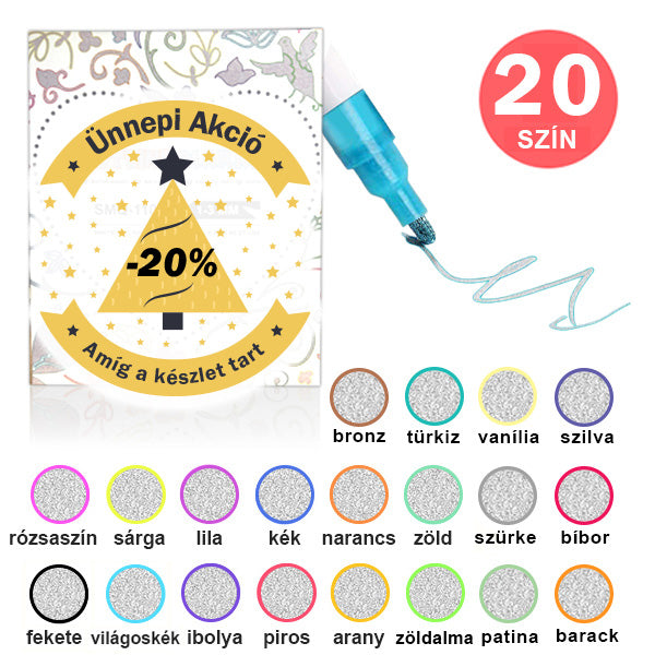 - A 12 darabos készletben megtalálható színek: 8 db-os készlet színei + Piros, Arany, Sötétzöld, Sötétlila.